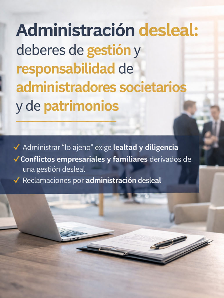 La administración desleal también se plantea fuera del mundo societario: cualquier persona que gestione patrimonio ajeno puede incurrir en conductas reprochables si se aparta del encargo y causa perjuicio.